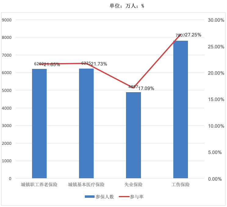 社保覆蓋方面,也是農民工最差,這進一步制約了農民工及其家庭的消費意愿。2017年農民工參加社會保險的比例,最高的工傷保險不到30%,參加職工基本養(yǎng)老保險和基本醫(yī)療保險的約21%,參加失業(yè)保險的只有17%。
