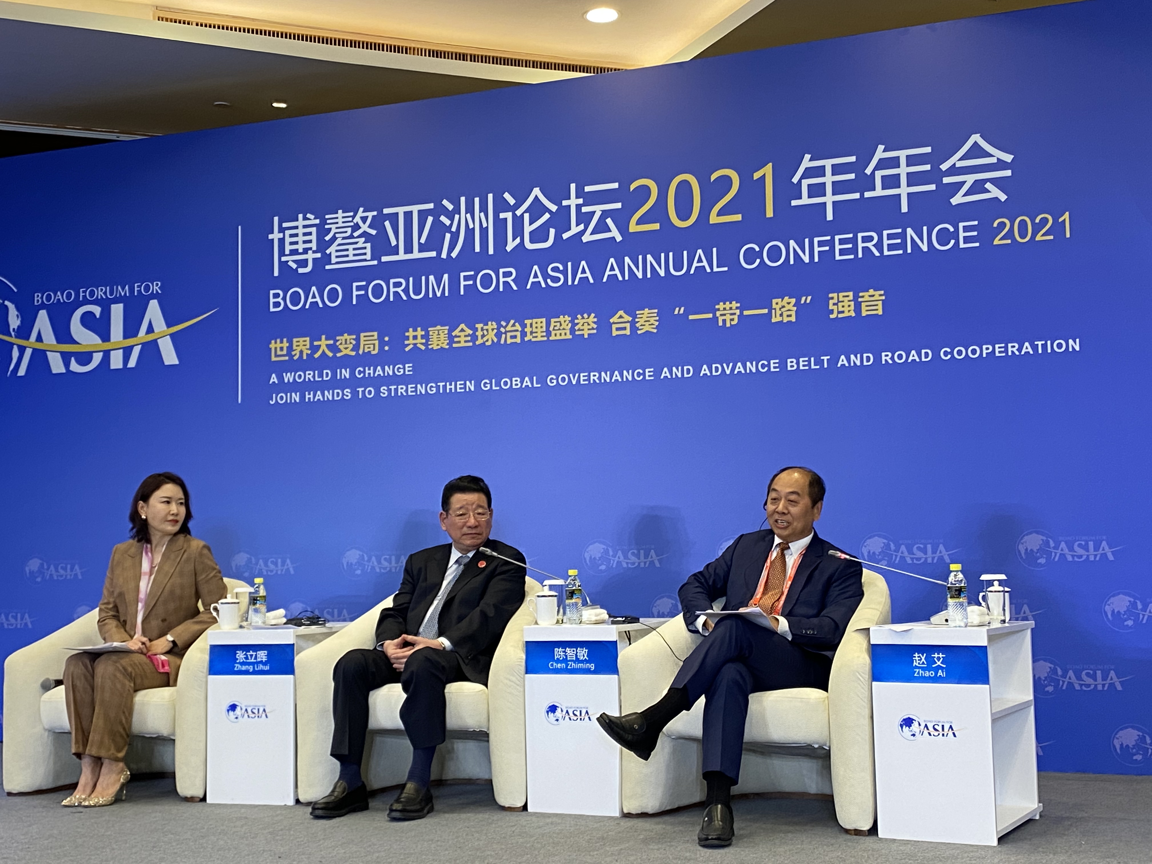 4月18日至21日,博鰲亞洲論壇2021年年會于海南博鰲舉行,國家主席習(xí)近平以視頻方式發(fā)表題為《同舟共濟克時艱,命運與共創(chuàng)未來》的主旨演講,國家副主席王岐山出席開幕式。我會會長彭森、常務(wù)副會長兼秘書長趙艾應(yīng)邀出席論壇,并分別在“雙循環(huán)的中國新發(fā)展格局”、“打造‘信任經(jīng)濟’” 分論壇上發(fā)表演講。