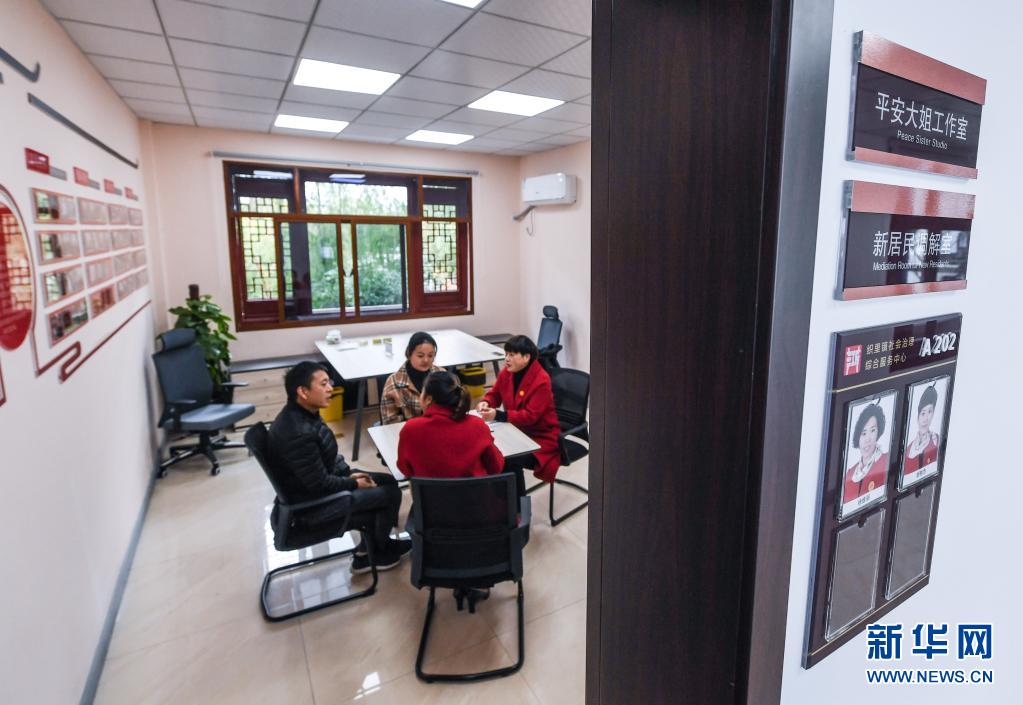 在浙江省湖州市織里鎮(zhèn)社會治理綜合服務(wù)中心的調(diào)解室,“平安大姐”工作室的志愿者對一起加工廠因加工童裝質(zhì)量差而導(dǎo)致業(yè)主虧損的糾紛進(jìn)行調(diào)解(2019年11月29日攝)。新華社記者 徐昱 攝