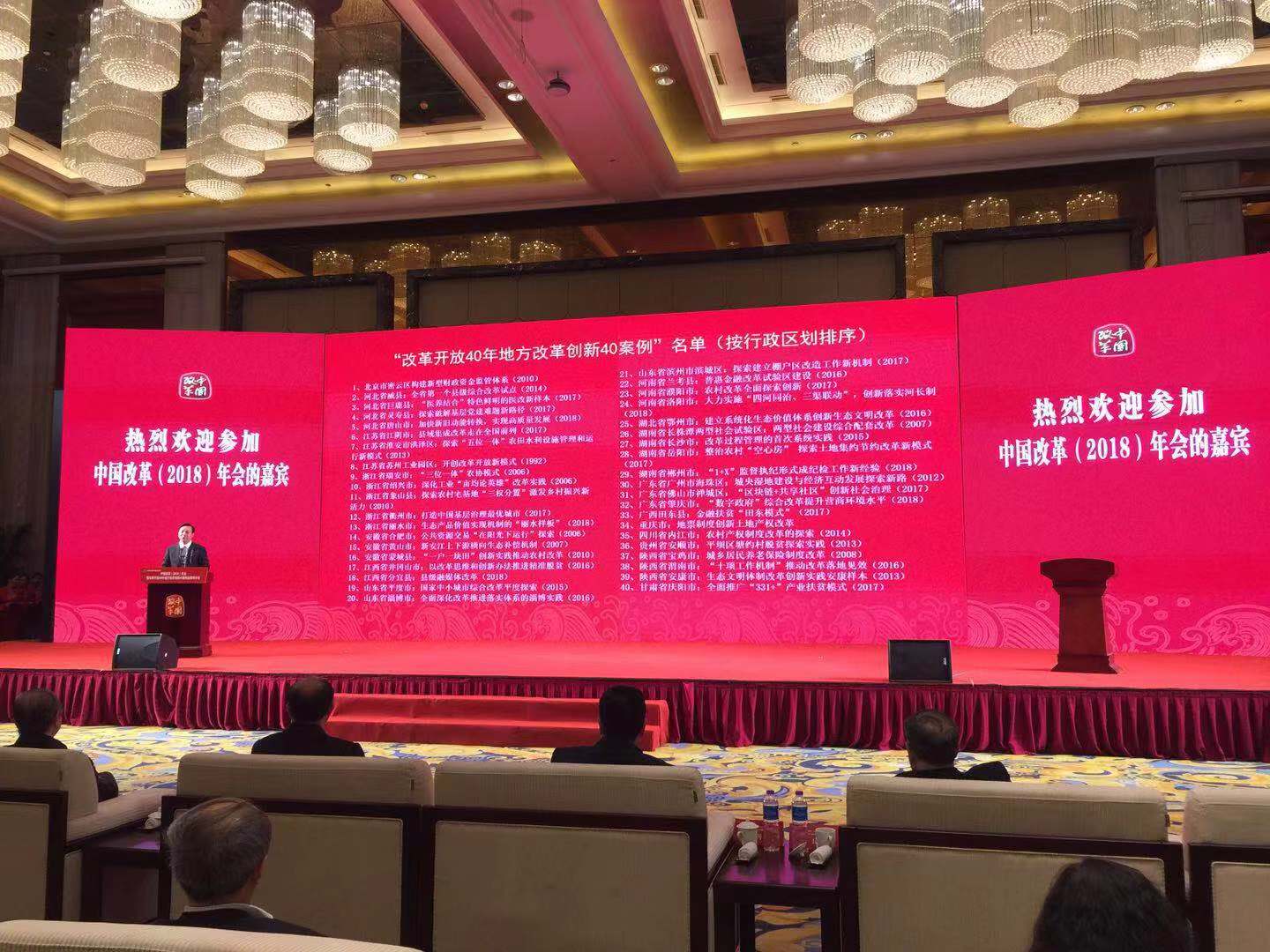 為響應中央關于慶祝改革開放40年號召,貫徹習近平總書記在慶祝改革開放40周年大會重要講話精神,中國經(jīng)濟體制改革雜志社舉辦的“改革開放40年地方改革創(chuàng)新40案例”(簡稱“40年40案例”)征集活動于12月27日在江蘇省江陰市舉辦的“中國改革(2018)年會”上,揭曉最終名單。180多位來自全國20多個省區(qū)市的各級改革部門負責人參加了發(fā)布會議。“改革開放40年地方改革創(chuàng)新致敬案例”名單同時發(fā)布。