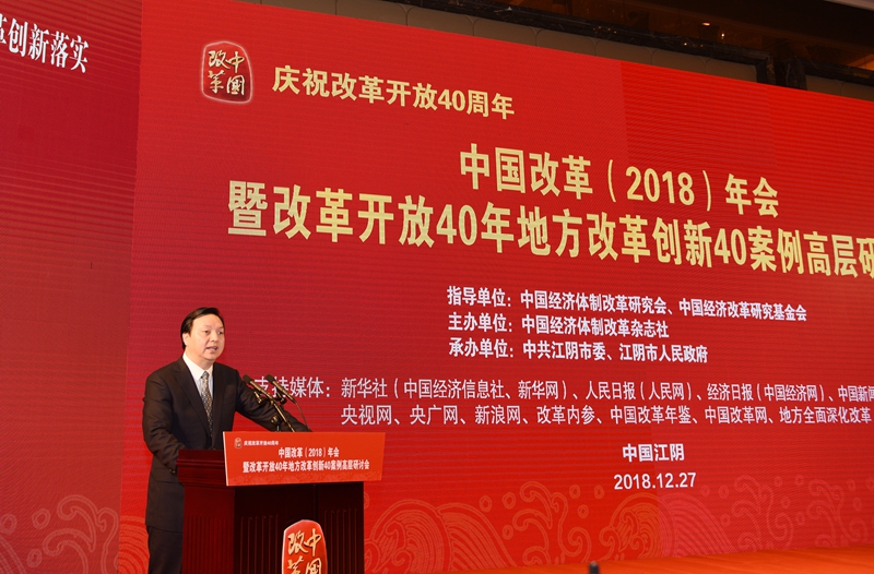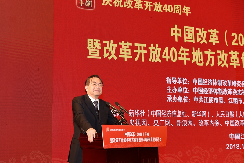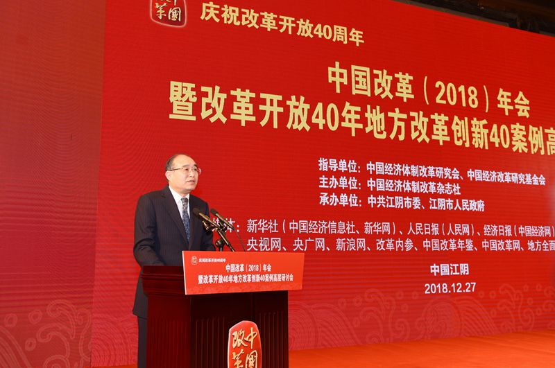 2018年12月27日,由中國(guó)經(jīng)濟(jì)體制改革研究會(huì)、中國(guó)經(jīng)濟(jì)改革研究基金會(huì)指導(dǎo),中國(guó)經(jīng)濟(jì)體制改革雜志社主辦,中共江陰市委、江陰市人民政府承辦的“慶祝改革開(kāi)放40周年——中國(guó)改革(2018)年會(huì)暨改革開(kāi)放40年地方改革創(chuàng)新40案例高層研討會(huì)”在江蘇省江陰市召開(kāi)。