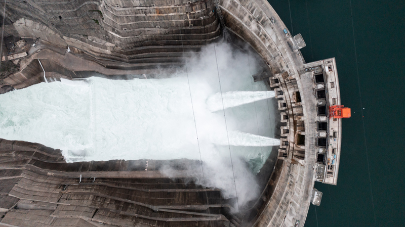 白鶴灘水電站一景(5月19日攝,無人機(jī)照片)。新華社記者 胡超 攝