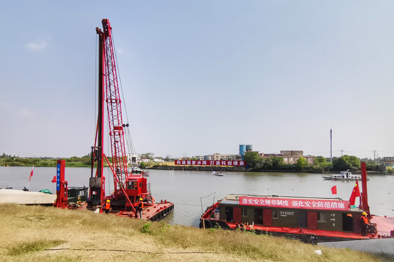 5月16日,在蘇州昆山的吳淞江整治工程施工現(xiàn)場,工程船舶整裝待發(fā)(手機(jī)拍攝)。新華社發(fā)