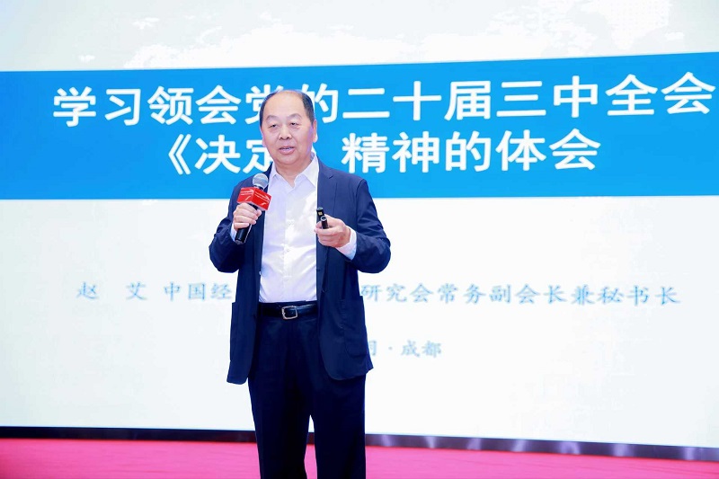 趙艾談到,黨的二十屆三中全會是在新時代新征程進一步全面深化改革開放,推進中國式現(xiàn)代化關鍵時期召開的一次十分重要的會議,全會審議通過了《中共中央關于進一步全面深化改革、推進中國式現(xiàn)代化的決定》,提出了60條300多項重點改革舉措,內(nèi)容豐富、分量很重、成色十足?!稕Q定》對于繼續(xù)完善和發(fā)展中國特色社會主義制度,推進國家治理體系和治理能力現(xiàn)代化,到2035年全面建成高水平社會主義市場經(jīng)濟體制,中國特色社會主義制度更加完善,基本實現(xiàn)國家治理體系和治理能力現(xiàn)代化,基本實現(xiàn)社會主義現(xiàn)代化,為到本世紀中葉全面建成社會主義現(xiàn)代化強國具有十分重要的意義。成都高新區(qū)在全面深化改革開放,以科技創(chuàng)新為引領,因地制宜發(fā)展新質(zhì)生產(chǎn)力,激發(fā)高質(zhì)量發(fā)展內(nèi)生動力,推動產(chǎn)業(yè)結(jié)構(gòu)優(yōu)化升級等方面,積累了一系列可圈可點的經(jīng)驗和做法,取得了一系列的亮眼成績。希望成都高新區(qū)百尺桿頭,再接再厲,按照黨的二十屆三中全會的精神,進一步深化體制機制改革創(chuàng)新,以新質(zhì)生產(chǎn)力發(fā)展為引擎,推動高質(zhì)量發(fā)展等方面取得更優(yōu)異的成績。中國經(jīng)濟體制改革研究會十分樂意與成都高新區(qū)就體制機制改革創(chuàng)新的重大問題開展合作研究。