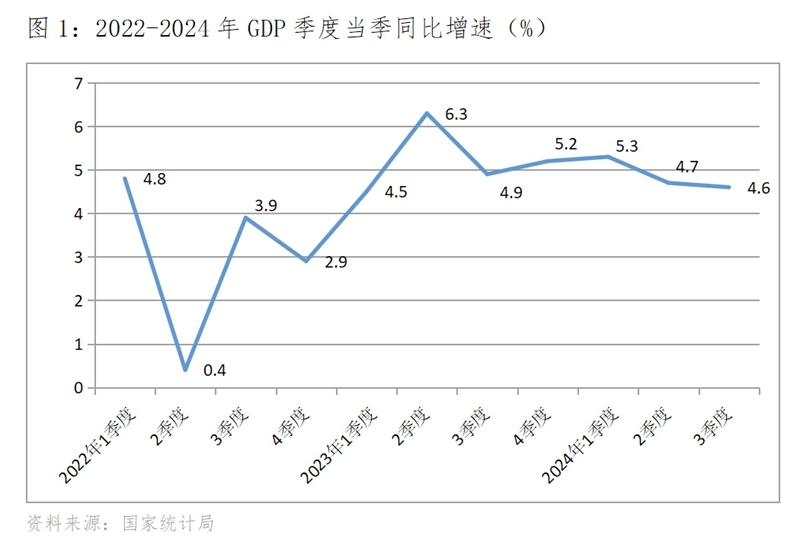 (三)增速上年同期基數(shù)較高。上年四季度GDP增速是自2022年以來季度GDP第二快的增速,同比增長5.2%,第一快的增速是上年二季度的增速,增長6.3%。由于上年二季度增速基數(shù)較高,今年二季度GDP增速為4.7%,回落了1.6個(gè)百分點(diǎn)。而如果今年四季度GDP增長5.5%,意味著GDP增速比上年四季度回升了0.3個(gè)百分點(diǎn)。從這一對比分析中就可看出,要實(shí)現(xiàn)今年四季度GDP增長5.5%還面臨著基數(shù)較高因素的影響。