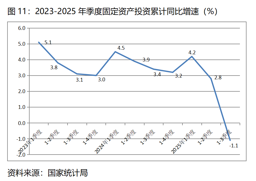 圖11:2023-2025年季度固定資產(chǎn)投資累計同比增速(%)