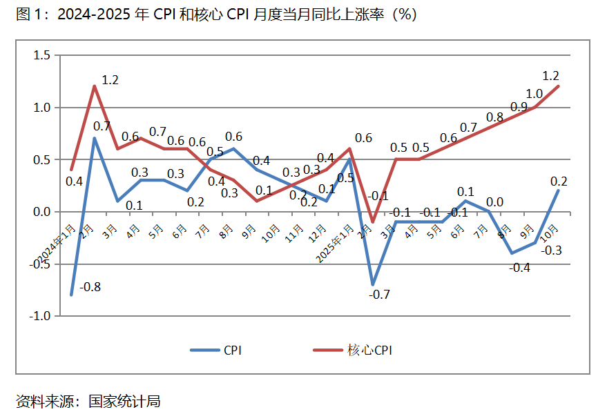 一、CPI漲幅持續(xù)回升。10月份,CPI同比上漲0.2%,9月份為下降0.3%,8月份為下降0.4%;核心CPI同比上漲1.2%,比9月份上漲1.0%回升了0.2個(gè)百分點(diǎn),9月份漲幅比8月份上漲0.9%回升了0.1個(gè)百分點(diǎn)。CPI和核心CPI漲幅持續(xù)保持回升的態(tài)勢(shì),表明經(jīng)濟(jì)運(yùn)行活力有所增強(qiáng),但由于漲幅均較為有限,加之較長(zhǎng)時(shí)期處于較低水平,經(jīng)濟(jì)運(yùn)行活力總體仍比較弱。